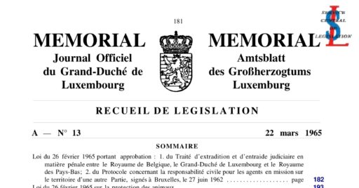 - Journal Officiel du Grand-Duché de Luxembourg, Loi du 26 février 1965 sur la protection des animaux, Art. 2, alinéa 5.
