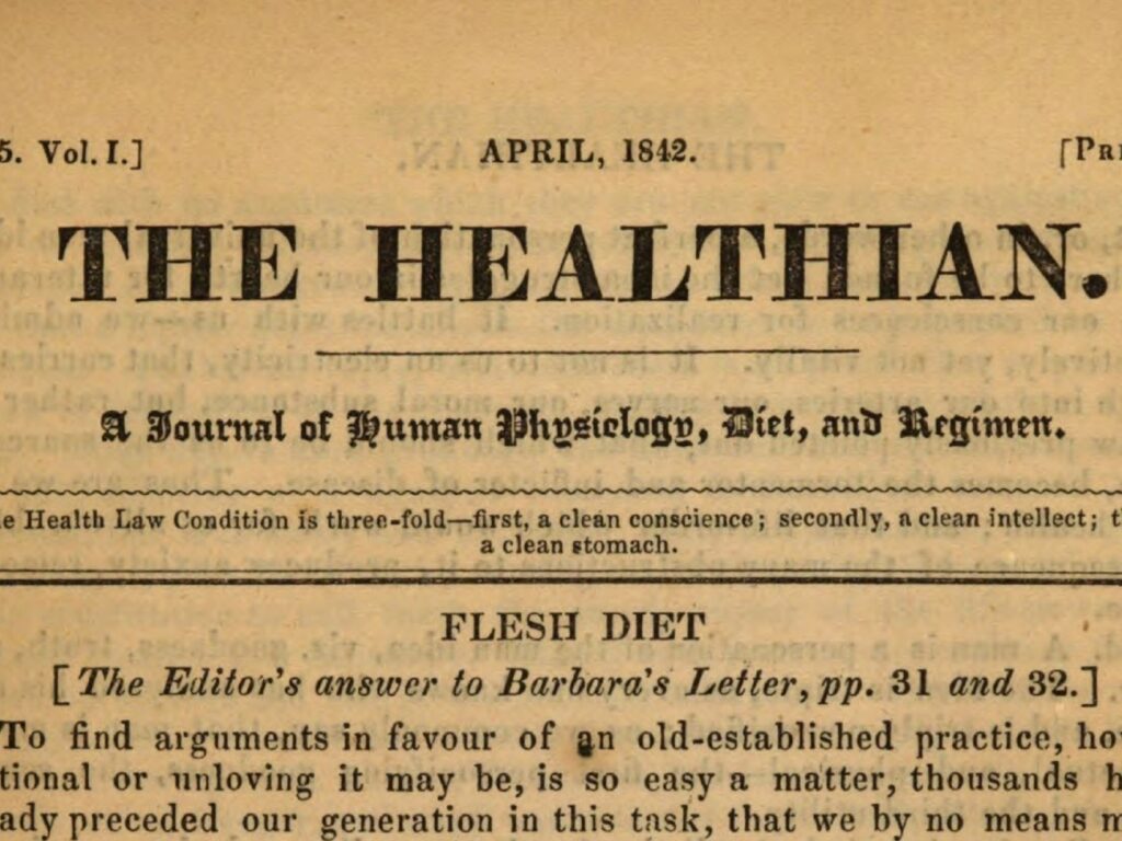 Avril 1842 – Première occurrence du terme « végétarien » 1800 - 1899 Angleterre Articles de presse & blogs Militantisme