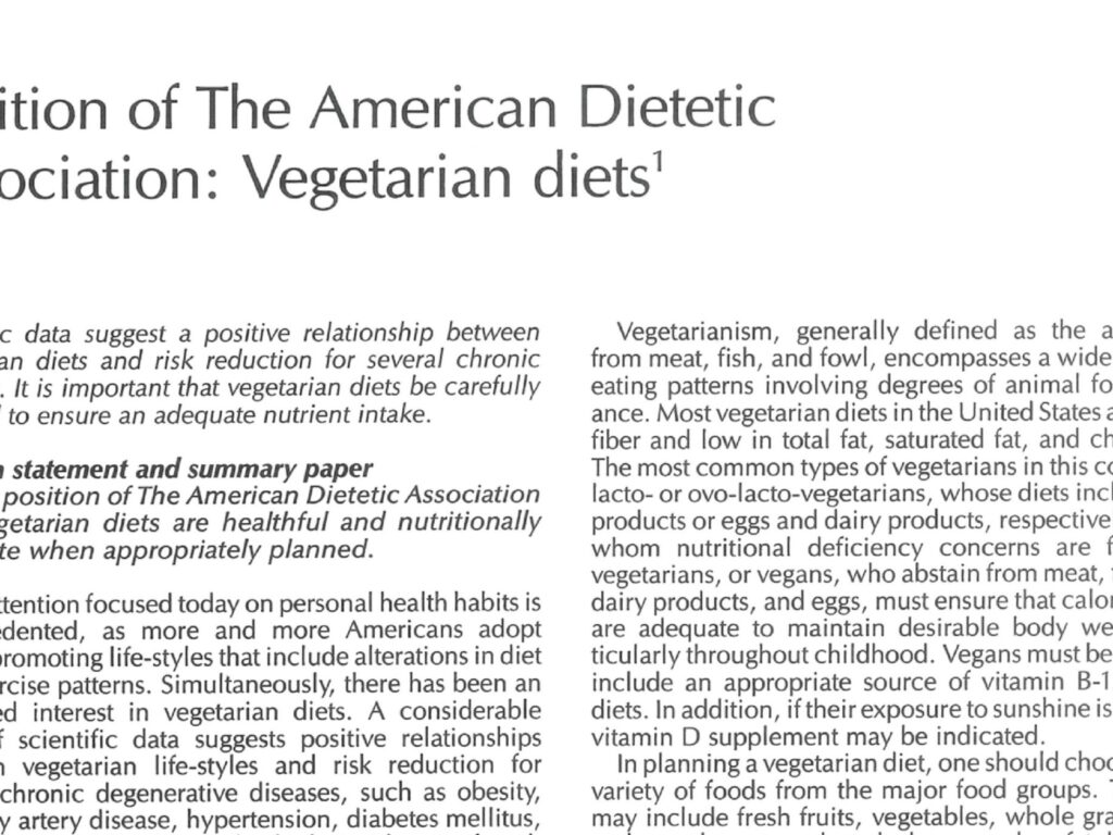1er mars 1988 – Première position de l’Association américaine de diététique sur les alimentations végétariennes 1975 - 1999 Articles scientifiques & thèses États-Unis Science