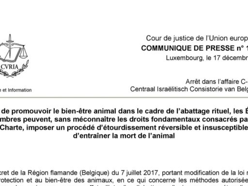 17 décembre 2020 – La Cour de justice de l’Union européenne réaffirme le droit des États membres à interdire l’abattage sans étourdissement 2020 - aujourd’hui Droit Europe